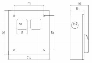 | Модел | Ш(мм) | H(mm) | D(mm) | D1 (мм) | Големина на дупка за инсталирање (мм) | |